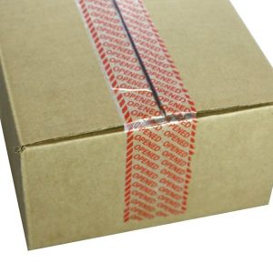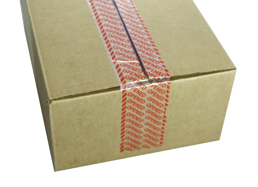 - Banda adezivă cu un sistem dublu-layer care evidențiază după aplicare, în cazul în care se dezlipește faptul că această bandă adezivă a fost desfăcută prin apariția unui mesaj de tipul “FRAUD”, “OPENED”