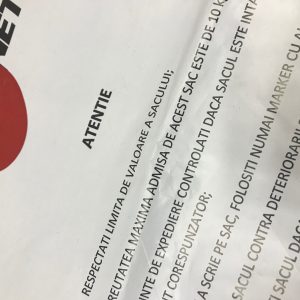 - Pungile securizarte sunt realizate din Co-ex film rezistent la grăsimi, apă și manevrare dificilă, și sunt 100% reciclabile.